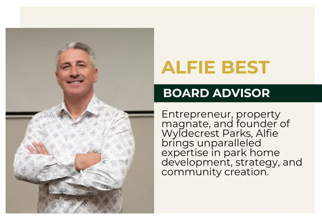 With Alfie Best, the world’s leading authority on park home living, as Board Advisor, and Wyldecrest Parks as our managing agent, Alfred James brings together passion, purpose, and proven expertise to deliver sustainable communities that make a real difference.